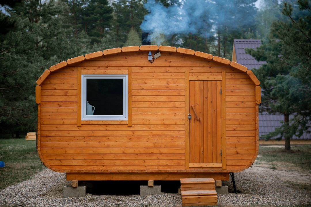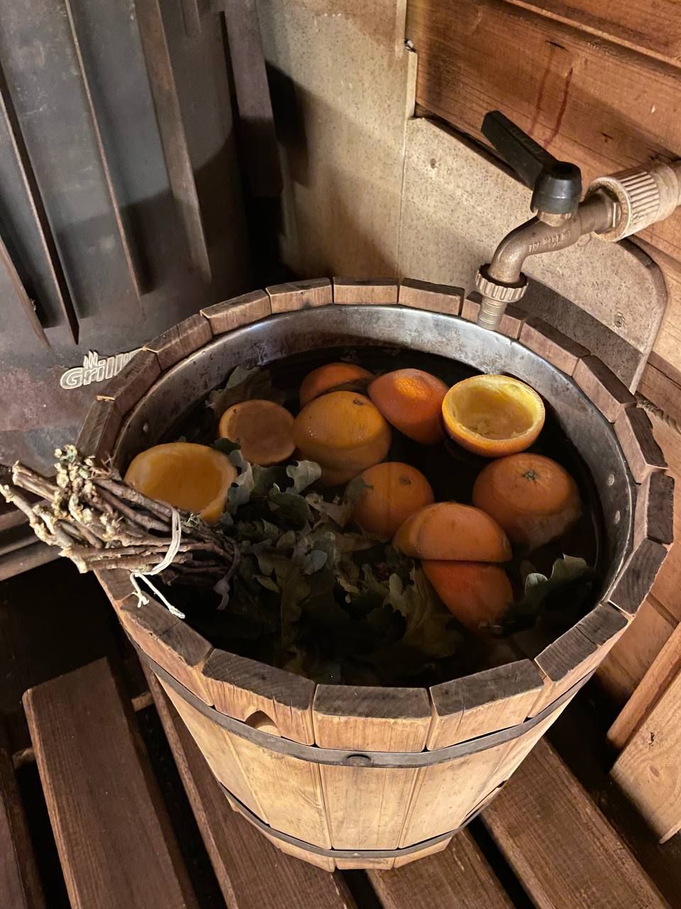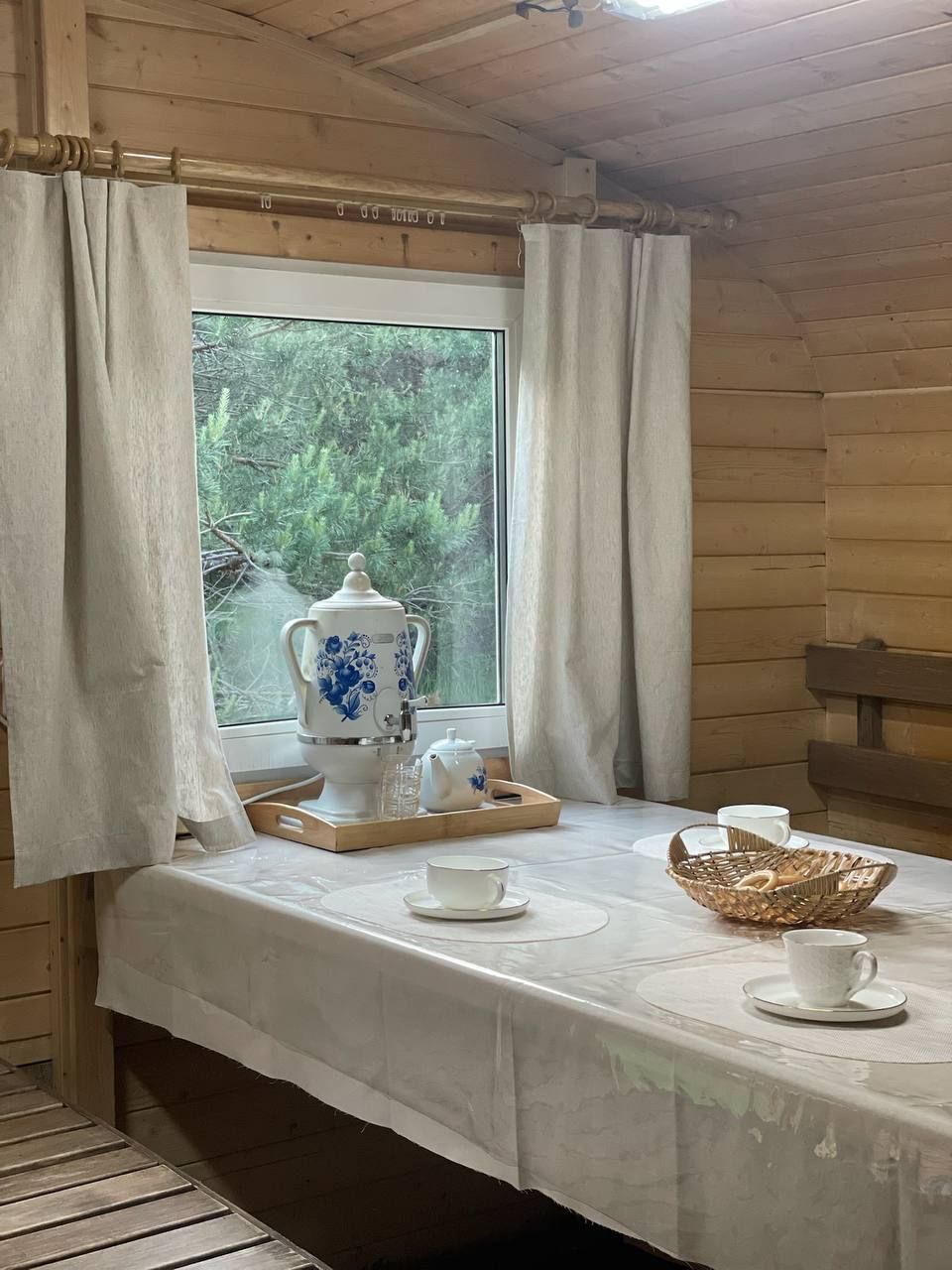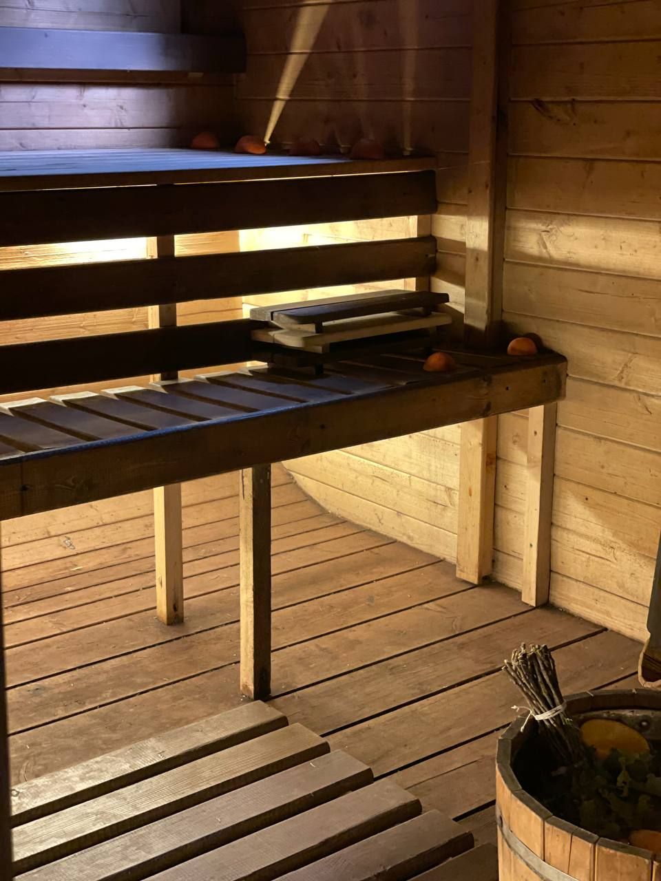 Внутри — аромат кедра, тепло от стен и мягкий свет.