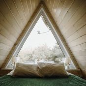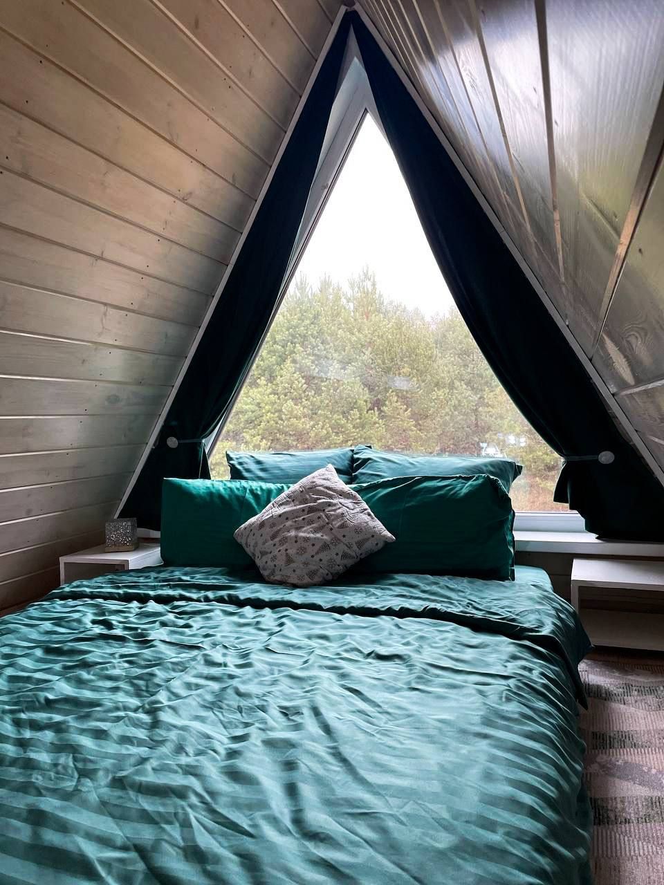 🛏️ На втором — спальня под крышей, с видом на лес прямо из кровати.