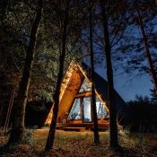 🎇 По вечерам A-frame «Тайга» становится особенно сказочным: гирлянды, свет сквозь окна и полное ощущение уюта.